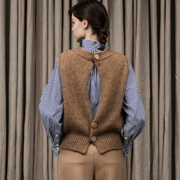 ボタンの留め方でシルエットの変化が楽しめる1枚。