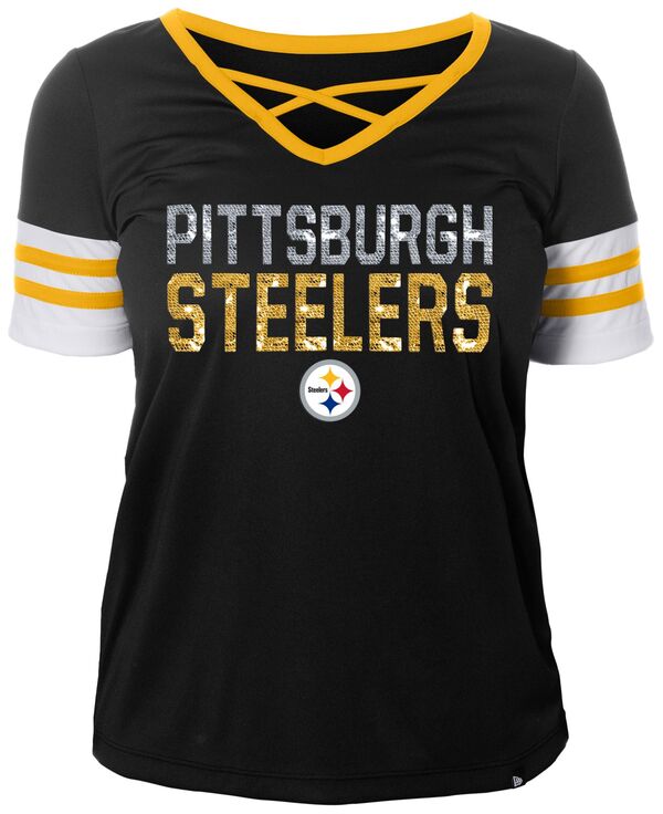 ニューエラ レディース Tシャツ トップス New Era Women's Pittsburgh Steelers Sequins Black T-Shirt